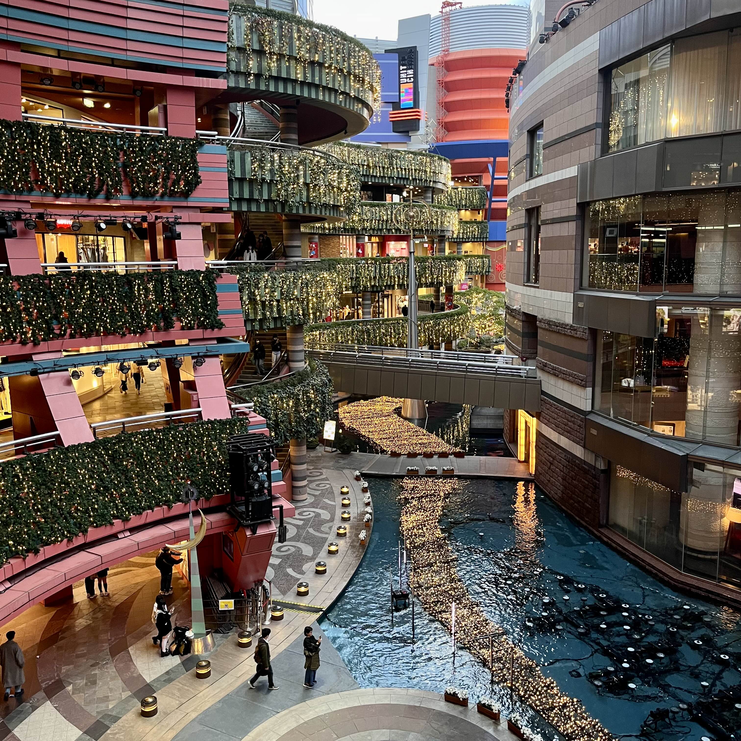 반대쪽에서 본 캐널시티. 인터넷에 치면 나오는 모양 그대로이다. 백화점보다는 아울렛에 가까운 듯? 풍경은 너무 예뻤고 실제 데이트하러 오신 분들도 많았다.